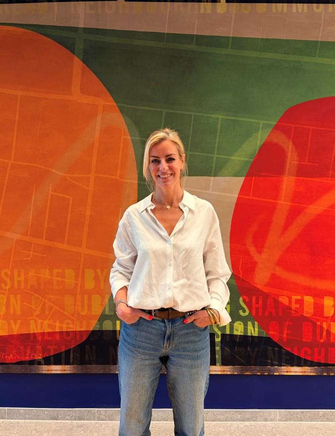 Taking her inspiration from the architecture, location, people and the community Aoibhne created art works that reflect Glass Bottle's position within the city and the thriving new community that's building alongside the existing communities of Sandymount, Ringsend and Irishtown.